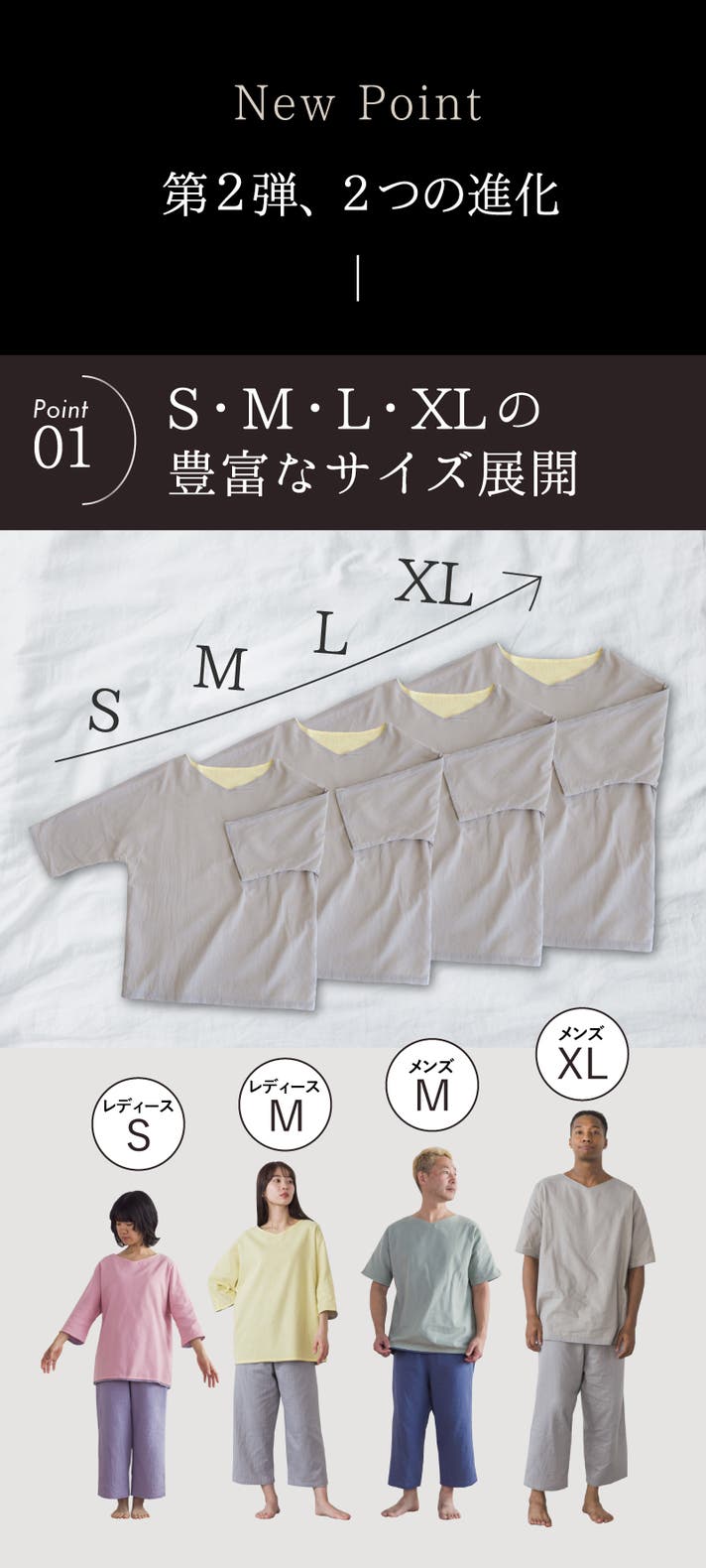 肌ストレスをため込まず、朝まで軽やかな着心地が続きます。