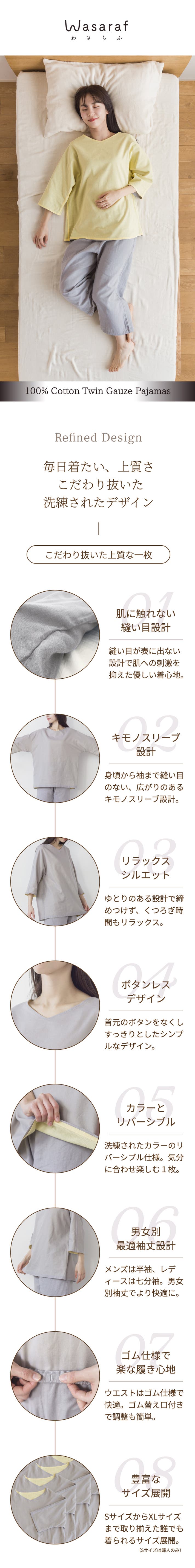 【早割 20%OFF】Wasaraf ガーゼパジャマ 1着