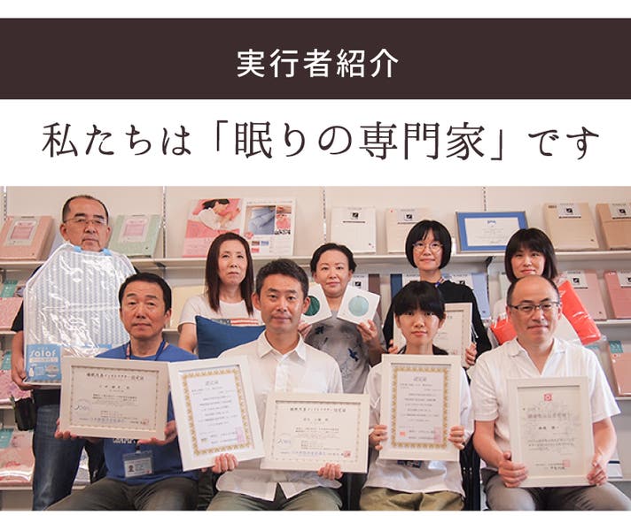 私たち「公大株式会社」は、お客様に的確なご提案・アドバイスができるよう、睡眠環境・寝具指導士、睡眠改善インストラクターなど、睡眠や寝具に関する資格を保有しています。