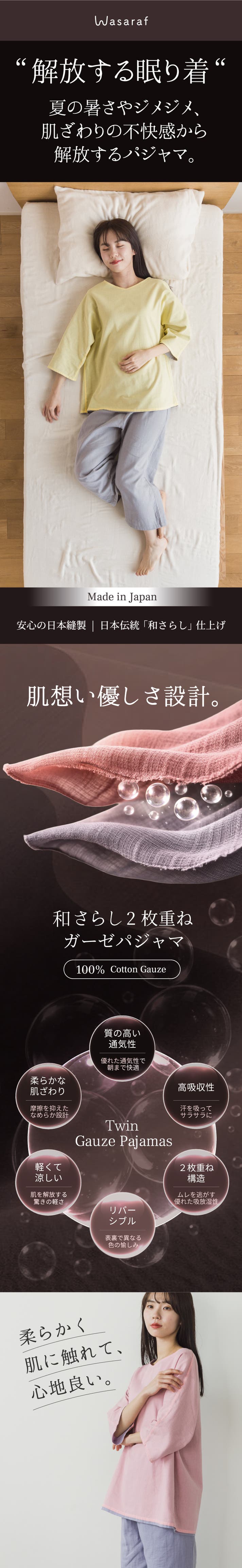 【超早割 25%OFF】Wasaraf 2枚重ね夏用ガーゼパジャマ 1着
