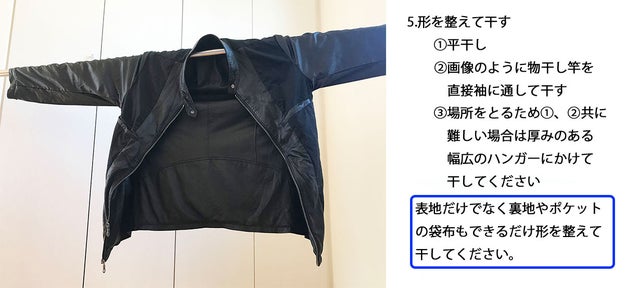 注7. 乾燥に時間がかかると臭いが発生することがあるのでできるだけ早く乾かしてください。(そのため袖からも風が入る物干し竿はおすすめです。)