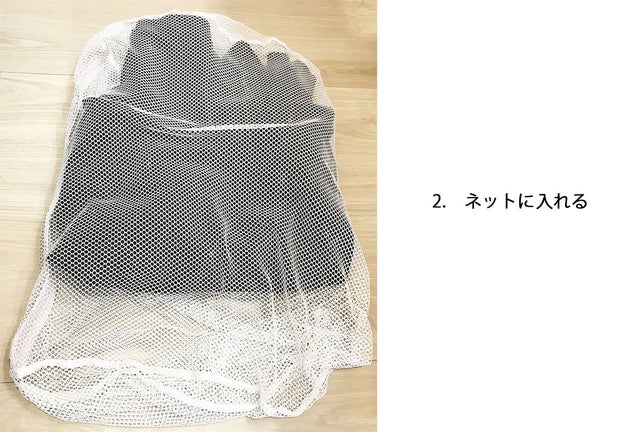 注3. 裏返してファスナーを閉めた状態でネットに入れて洗うことで、できるだけ革の表面にキズが付くリスクを減らすことができますのでこの洗い方を推奨します。