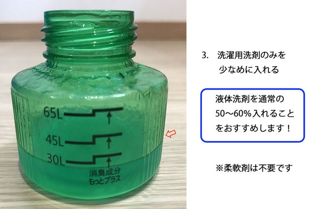 注6. 洗剤はできるだけ液体洗剤を使用し、洗剤の量は通常の50~60%を目安にしてください。柔軟剤は入れないでください。
