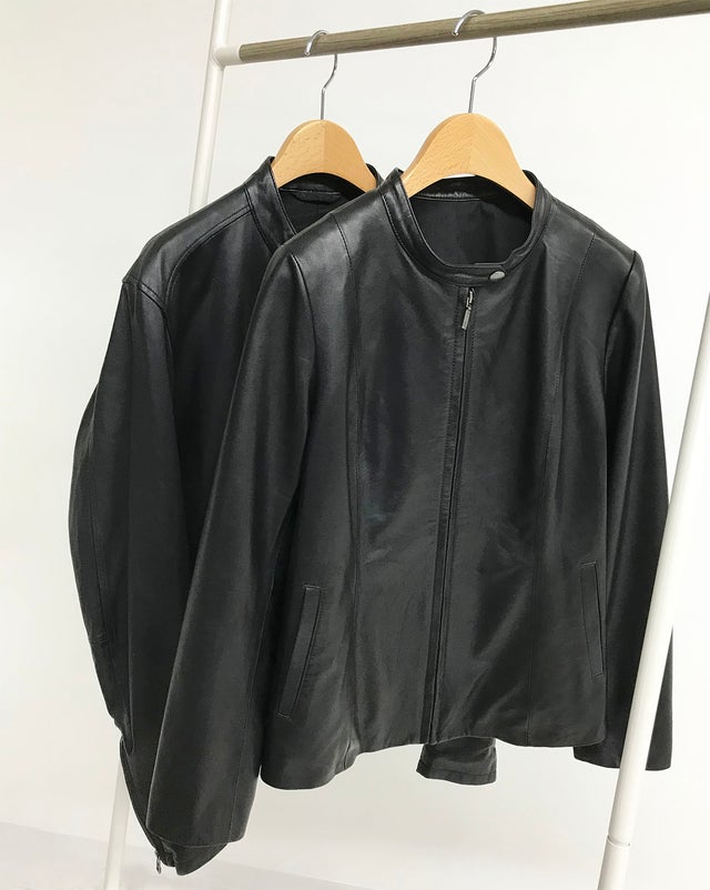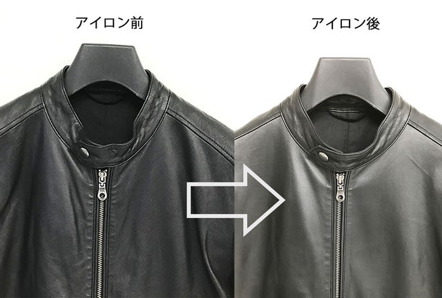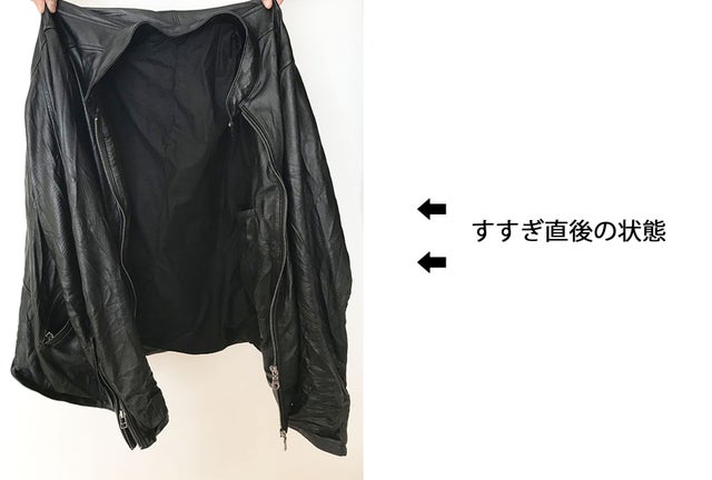 注8. レザーは乾くときに若干縮みますが、半乾きの状態で一度袖を通して身体になじませてから再度同じように干すと縮みをできるだけ少なくすることができます。