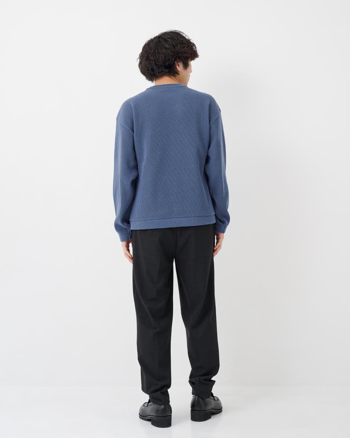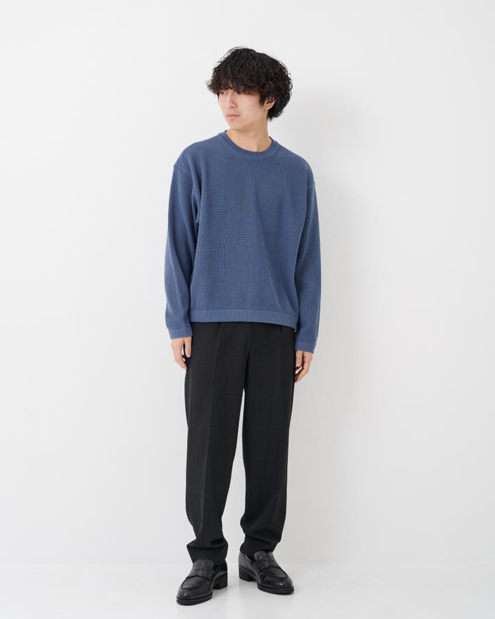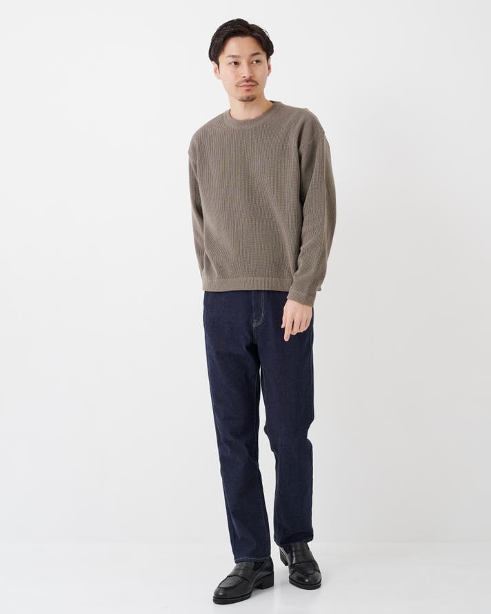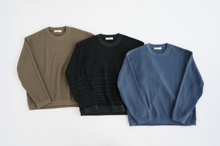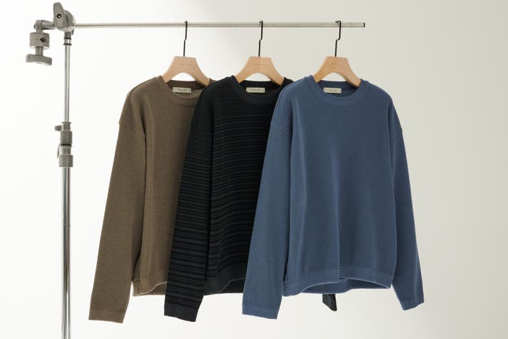 春秋の主役でも、冬のインナーでもお使い頂ける、万能ニットです。