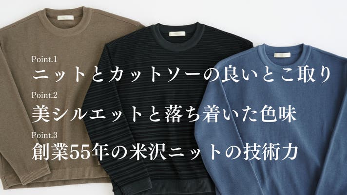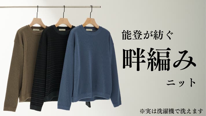 - 【ニット+カットソー】畔編み『上品・伸縮・シワになりにくい』&サイロスパン糸『滑らか・洗濯可』