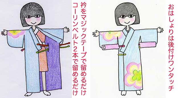 仕組みは知らなくても温め方だけ覚えればいい電子レンジの様に、キモノと着付けを知らなくても美しく着られるように作っています。