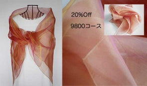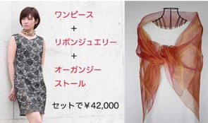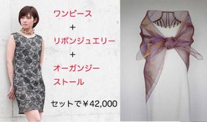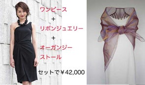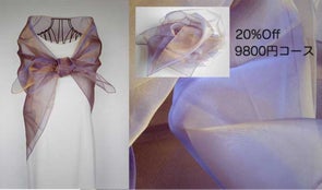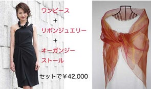 販売予定価格9800円のオーガンジーストールとねじりドレープワンピース38000円の合計47800円をセットで42000円でお贈りいたします。