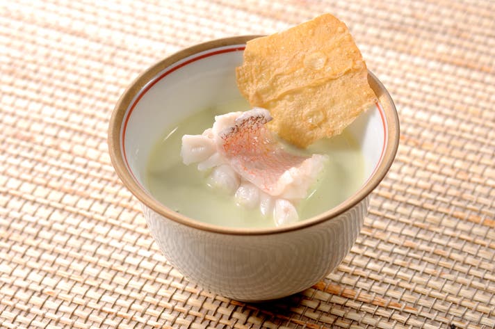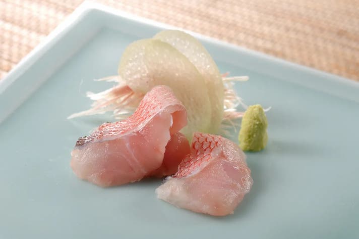 - 若狭ぐじ、釣り金目鯛、明石鯛、こぶ鯛を様々な技法でお召し上がりいただくひと時を
