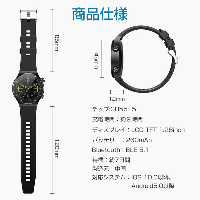 今までの腕時計の基準を大きく変えるスマートウォッチです。弊社の開発部担当者がメーカーと打ち合わせて、15回の提案により、細部に至るまで修正した、技に磨きをかける。円形文字盤のデザインで男性だけでなく女性でも着けやすいです。高品質なシリコン素材のバンドを採用し、汚れにも強く、柔軟性と頑丈さを兼ね備えた、質感も手触りも抜群、軽くて着用しています。スマートウォッチを通じて、ユーザーは日常生活の運動データを記録することができ、これらのデータをスマホに同期できます。仕事や勉強で忙しい人にとって、スマートブレスレットを身につけることは、運動を監督し、リズムのよい生活習慣を身につけるのに非常に役立ちます。