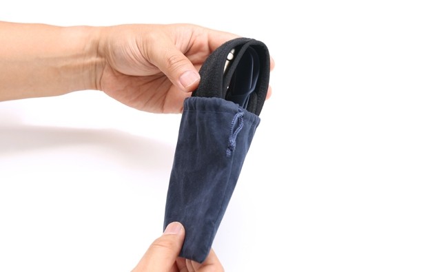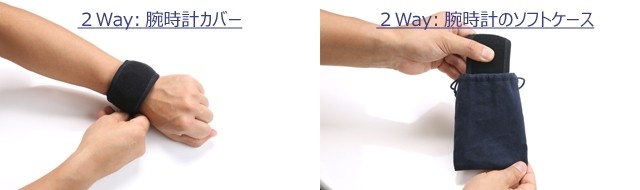 さらに、腕から外した時計に巻いて付属のポーチに入れると保護ケースになります。