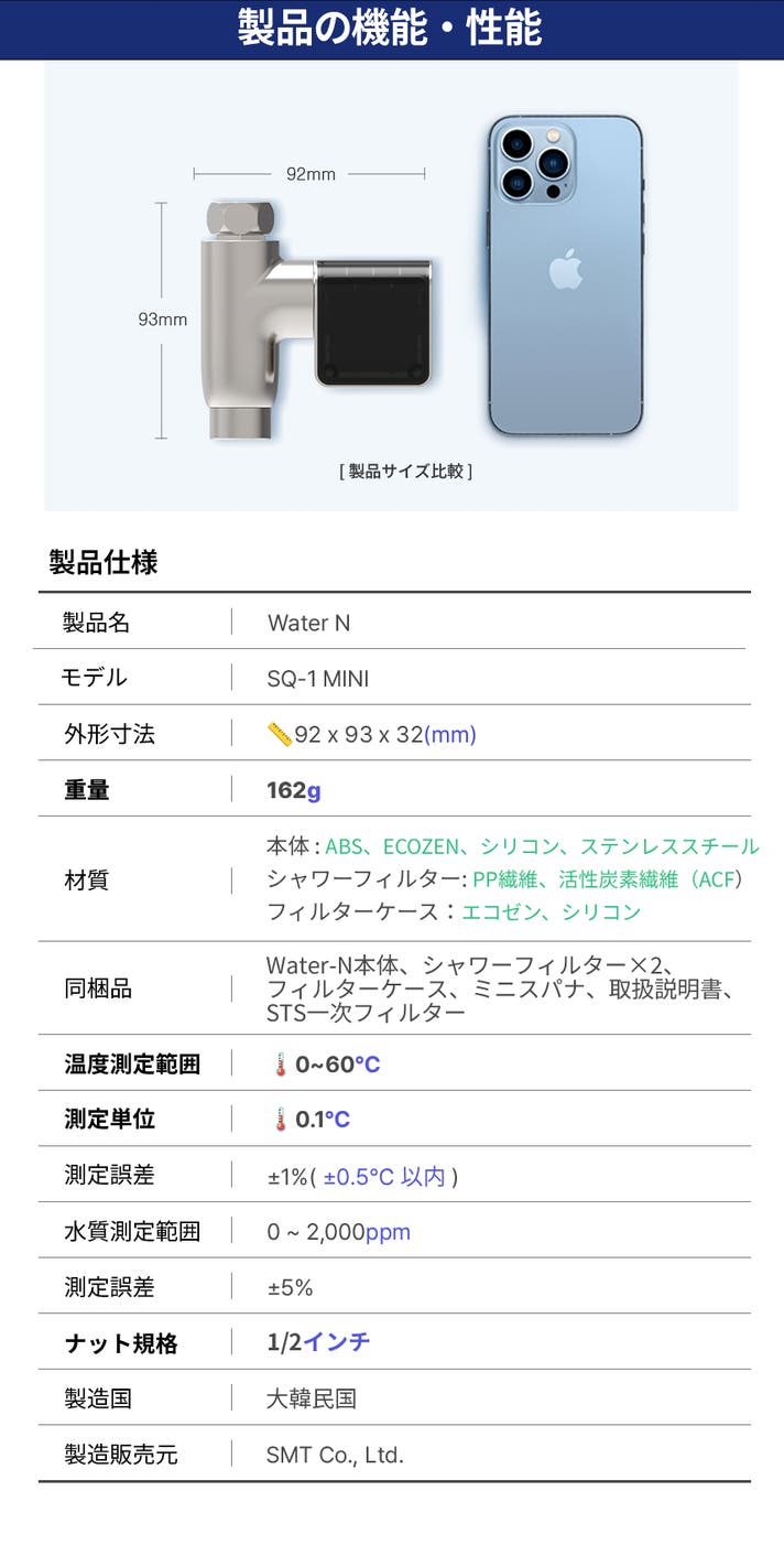 -同梱品: Water-N 1EA + シャワーフィルター 2EA + フィルターケース1EA + ミニスパナ1EA