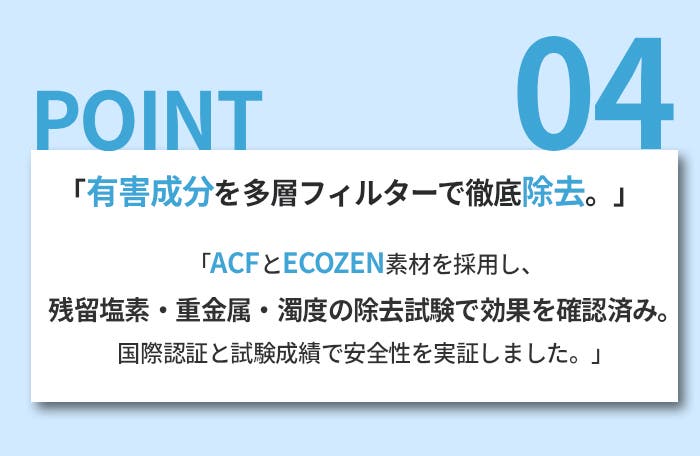 残留塩素や不純物を減らし、肌への刺激をやわらげます。
