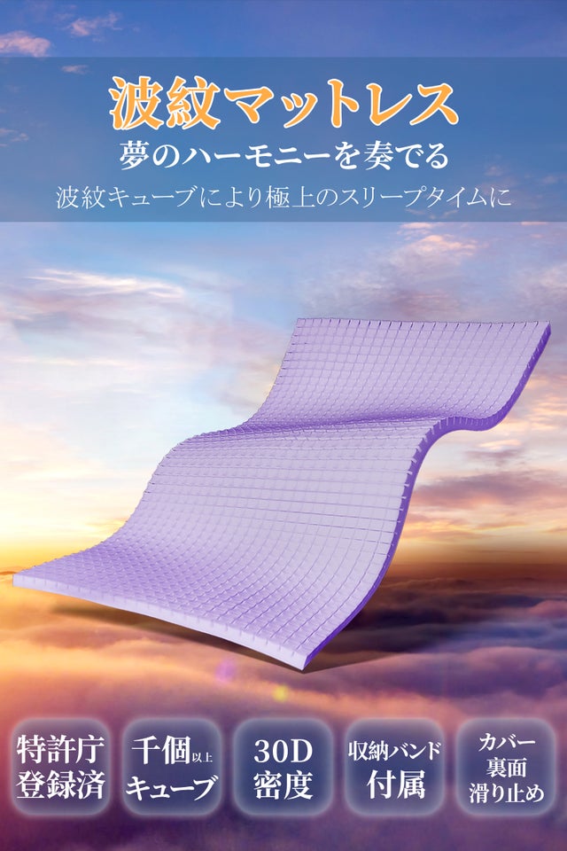 - 2020特許庁登録済商品より一層進化した細かい波紋キューブ1000個以上もあるマットレス