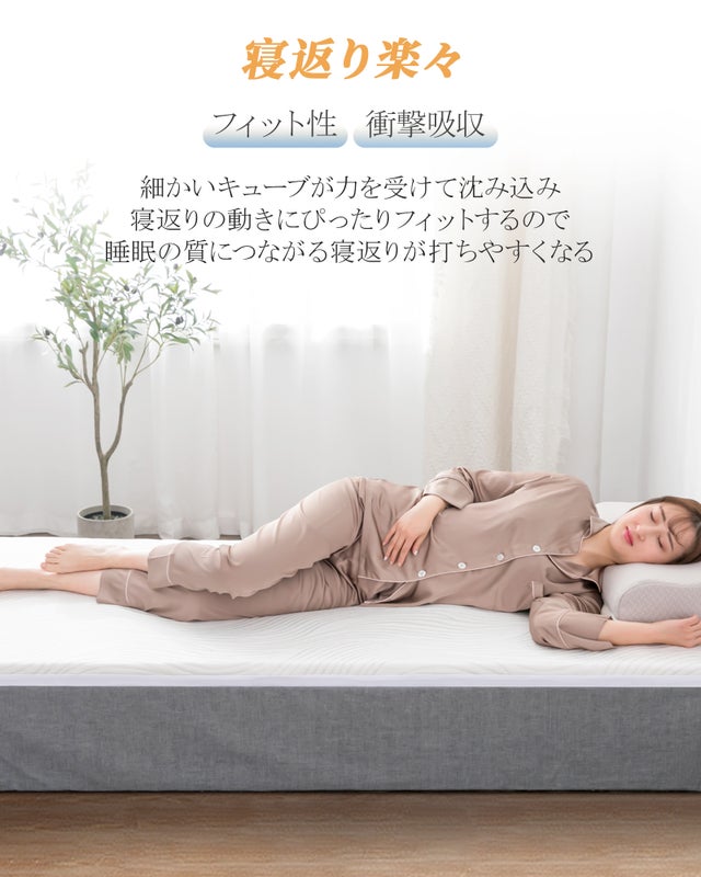 - キューブの押し合いによりフィットさが抜群で、沈み込みすぎず寝返りがしやすく気持ちよい
