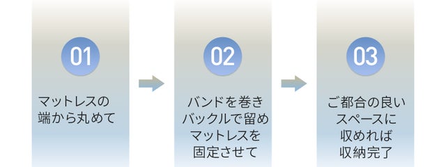 ※圧縮状態から、寝られる状態に復元するまで、お部屋の環境により1~3日ほどかかります。お時間に余裕をもって復元してください。