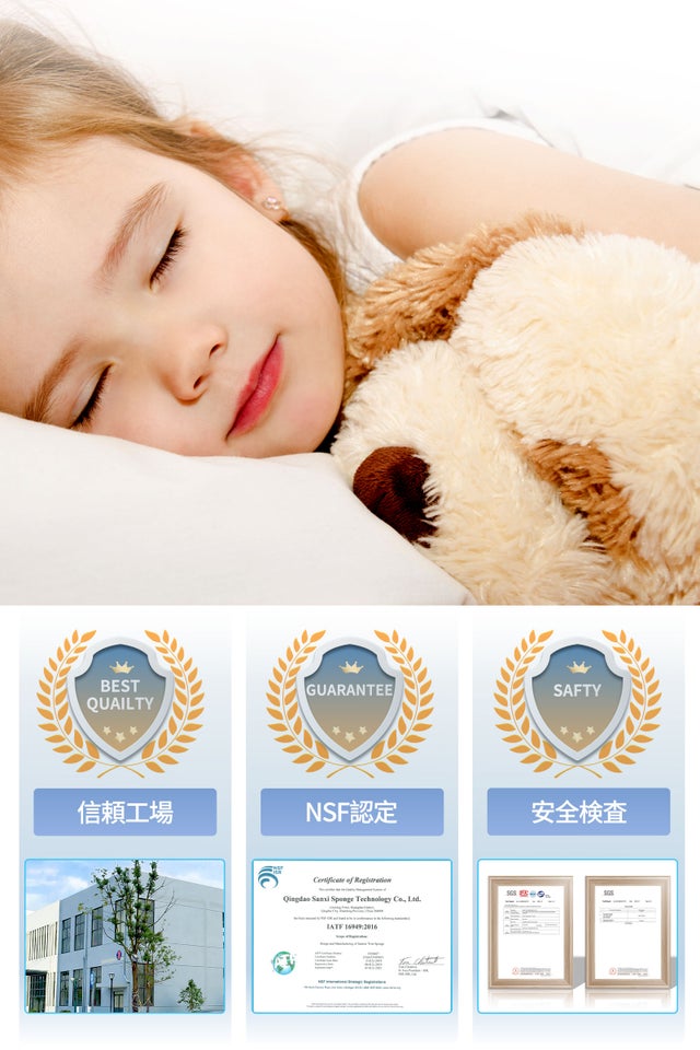 生産工場はNSF認定済みのポリウレタン専門工場で、製造技術とポリウレタンフォームの安全性と品質の高さが自慢です。ブランド品の原料を採用し秘法のフォーミュラで高品質のウレタンフォームに仕上げます。