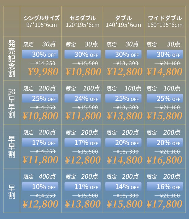 ※ワイドダブルサイズ:幅約160*奥行約195*高さ6cm