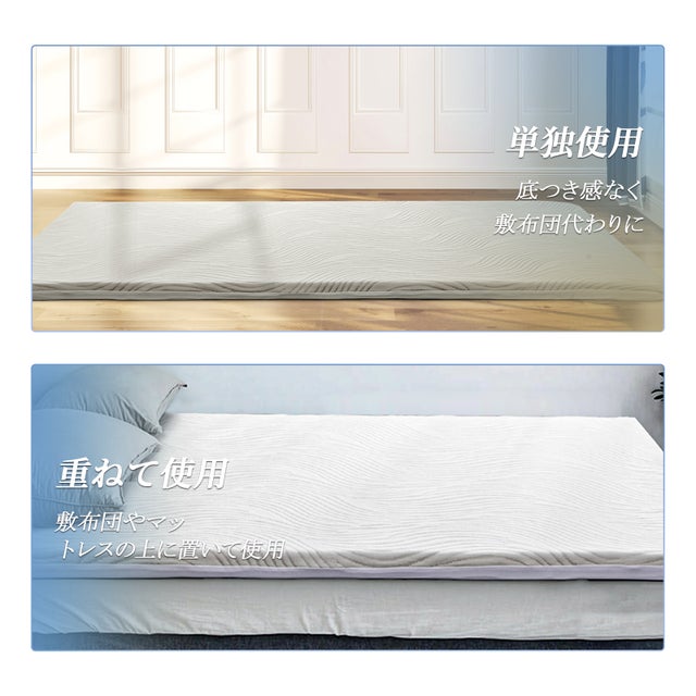 軽量&底付き感なしとの特徴があり、床に置いて利用、利用中のマットレスに重ねて利用、布団の補強として使用、来客時の対応など様々なシチュエーションで大活躍できます!