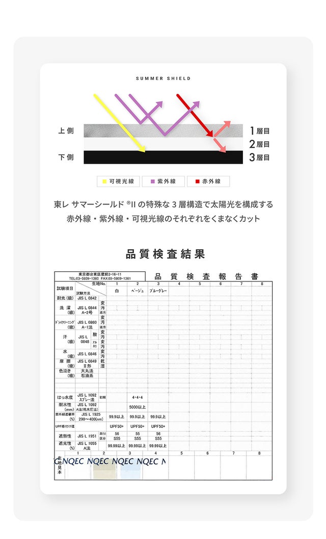 品質検査結果最高値の遮光性・紫外線遮蔽率