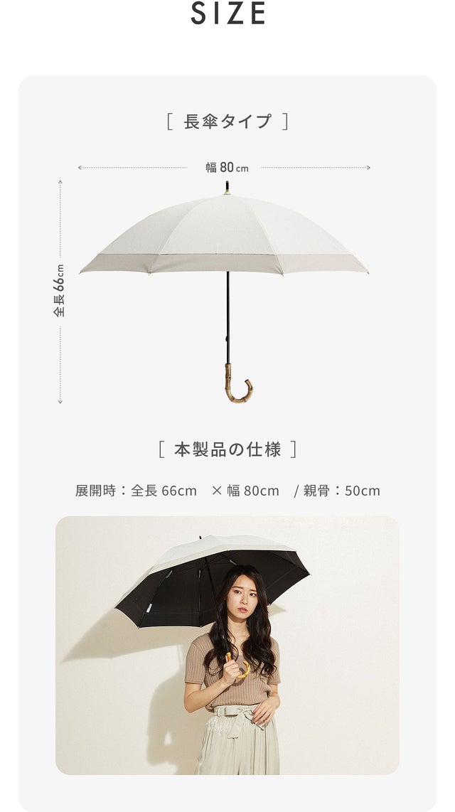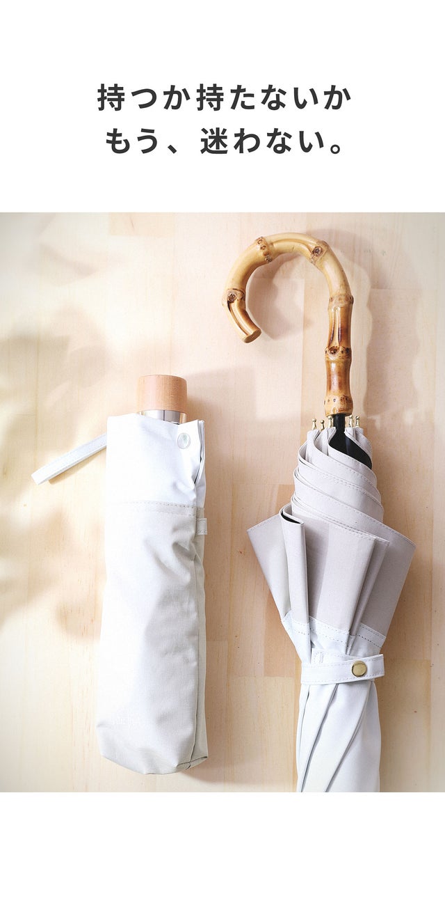- コーデを選ばないシンプルなデザイン。好みで選べる折りたたみ傘と長傘の2ラインナップ!