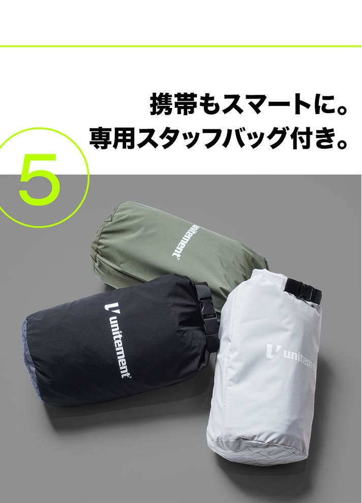 軽量でコンパクトに畳めるので、付属の専用スタッフバッグに収納すれば、持ち運びも容易です。