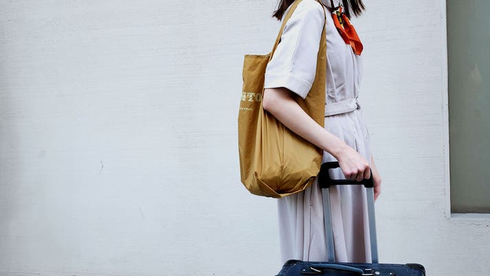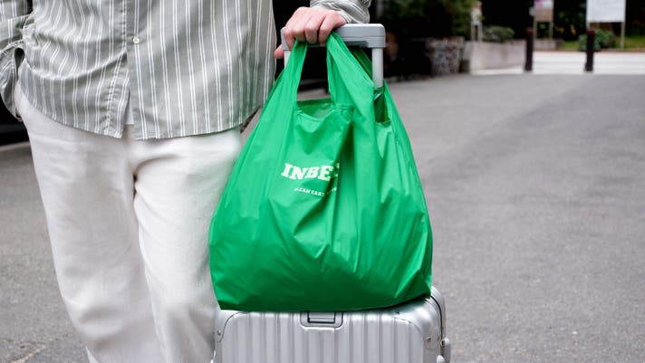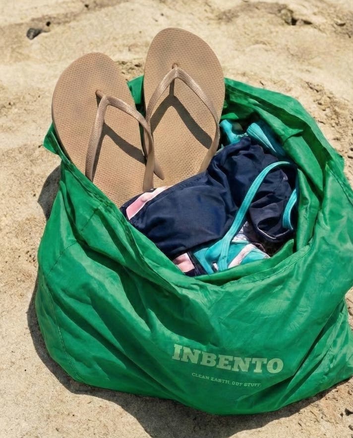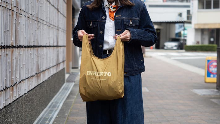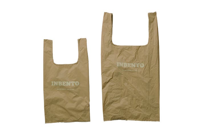 INBENTOはきれいに折りたたまなくても大丈夫な風合いのエコ素材を選びました。クシャクシャに丸めて収納袋に。