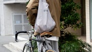 雨の日の買い出しでも、Mサイズなら肩にかけて傘が差せます。