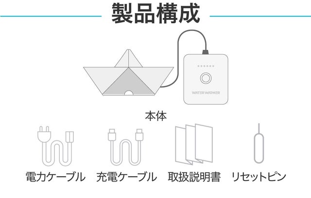・除菌モード、洗浄モードの場合、USBケーブルをモバイルバッテリーなどに接続してすぐに使用が可能です。
