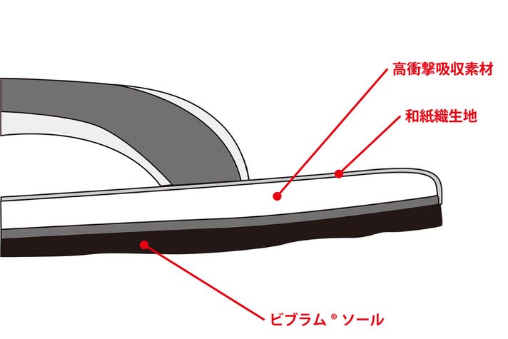 従来の雪駄の弱点だった「クッション性」「グリップ力」「安定性」を徹底的に改良。