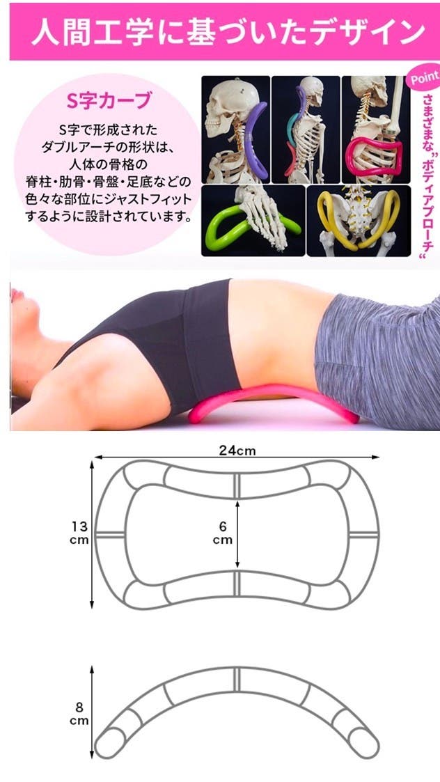 脊柱のボディアーチの形状にフィットするように、ウェーブストレッチリングは設計されている