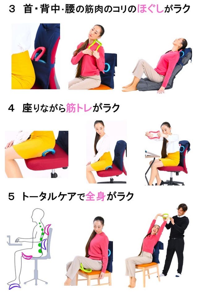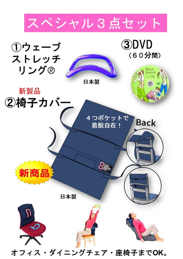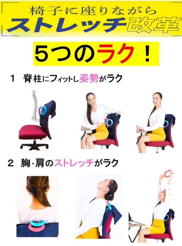 - どこでも簡単ストレッチ!伸ばしながら5つのラク。「椅子カバー」とウェーブリングで姿勢スッキリ!
