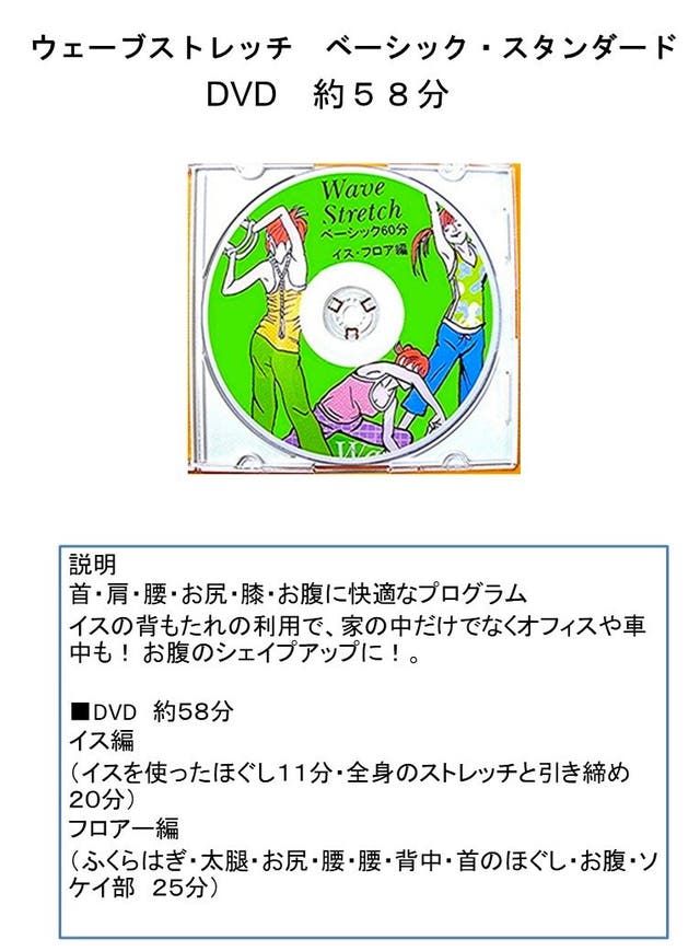 DVDは下記の2種類が1つづ付きます。 ■DVD1本目 ウェーブストレッチ ベーシック・スタンダード 約58分