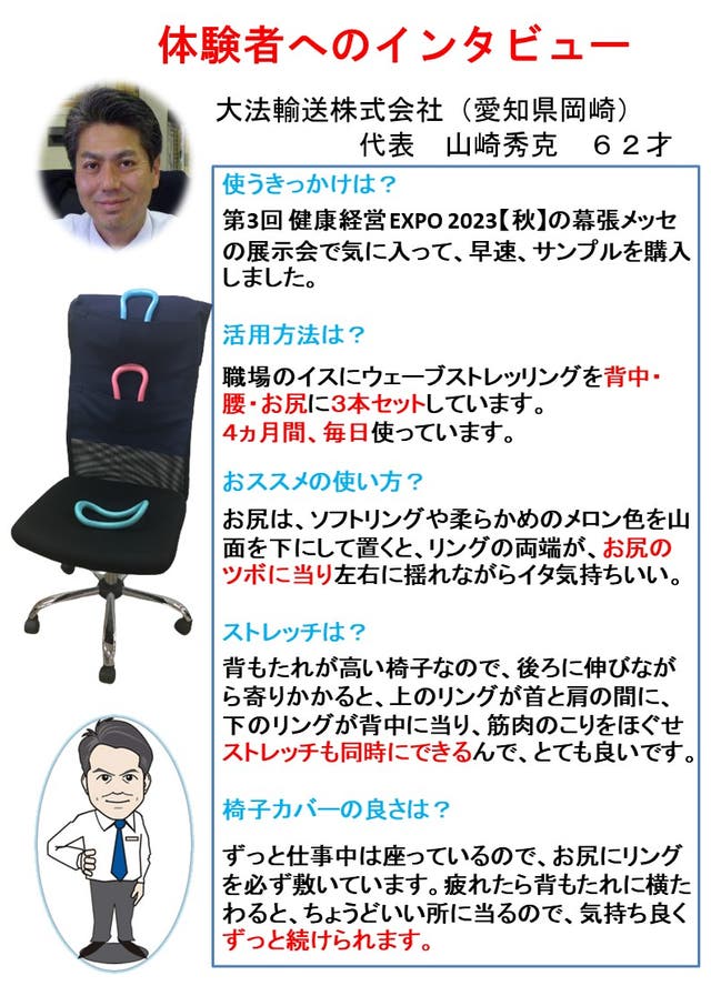 特許製品「ウェーブストレッチリング」を活用した 肩・腰・快適 椅子カバー新発売!