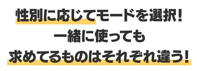 性別を選択すると各ユーザーに最適化された8つのモードを体験できます。