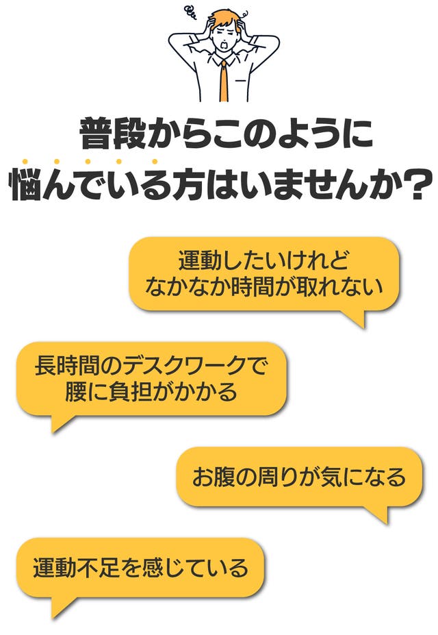 スマホを見ながら、本を読みながら、仕事をしながらなど様々な場面で筋肉の刺激が可能です。