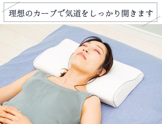 首の理想カーブを保つことで気道を開き、楽な呼吸を促し、睡眠をサポートします。