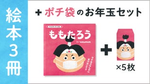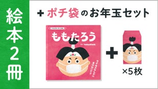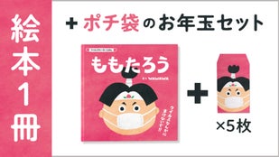 ウイルスたいさくえほん『ももたろう』を先行販売。さらに、お正月にお子様たちへ『お年玉+絵本』の贈り物用としてポチ袋とセットのリターンもご用意いたしました。