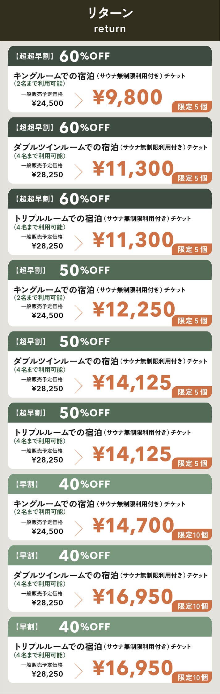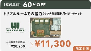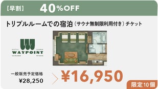 【超超早割】トリプルルームでの宿泊(サウナ無制限利用付)チケット 4名様まで