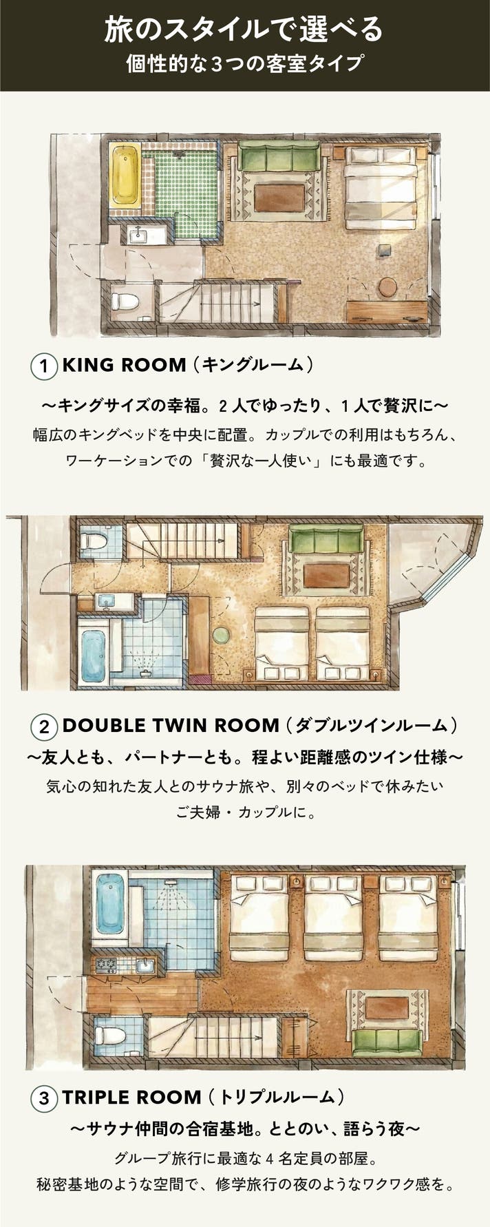 【超早割】トリプルルームでの宿泊(サウナ無制限利用付)チケット 4名様まで
