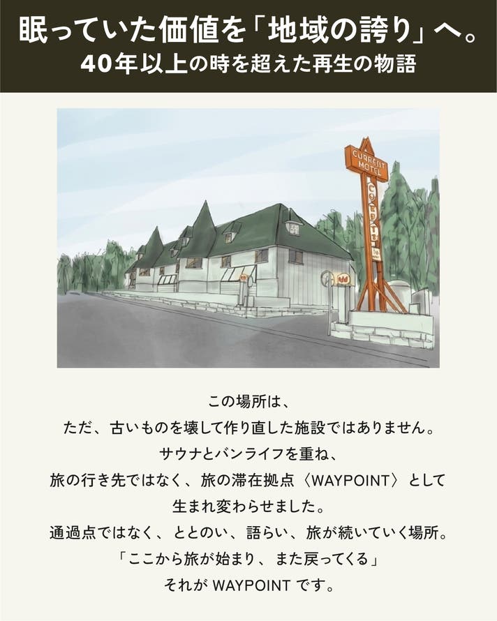『世界とつながる場を作り、 世界を変える出会いを創る』をミッションに、日本全国でホテルやサウナを通じたさまざまな場作りを行う。