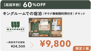 【超超早割】キングルームでの宿泊(サウナ無制限利用付)チケット 2名様まで