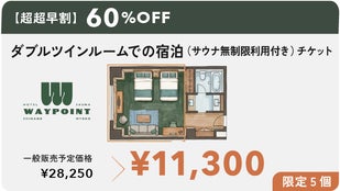 【超超早割】ダブルツインルームでの宿泊(サウナ無制限利用付)チケット 4名様まで