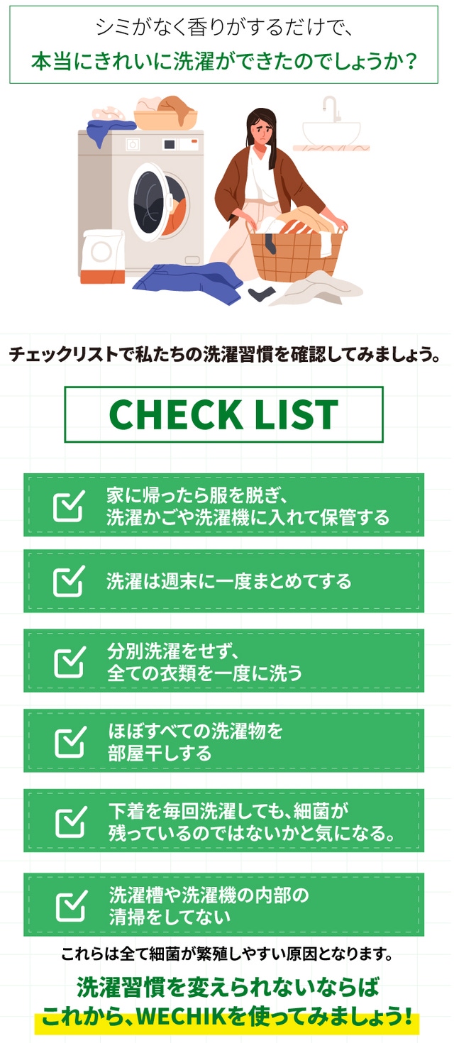 一般洗剤又は柔軟剤で除去できない有害微生物除去WECHIK!