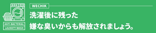 洗濯機の内部と洗濯槽まで抗菌、柔軟機能まで同時にできる WECHIK洗濯除菌液で 服の損傷と変色の心配がない抗菌効果を体験してみてください。