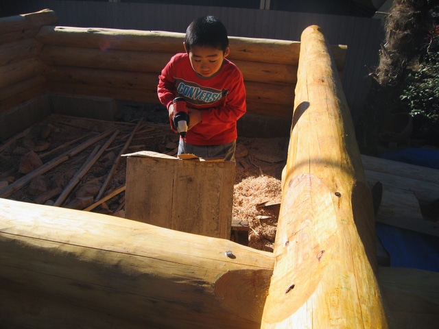 父との思い出はたくさんありますが、その中でもログハウスを一緒に建てたことは強く記憶に残っています。二階建ての小さなログハウスですが、基礎打ちから屋根張りまで、全て父と一緒に行いました。