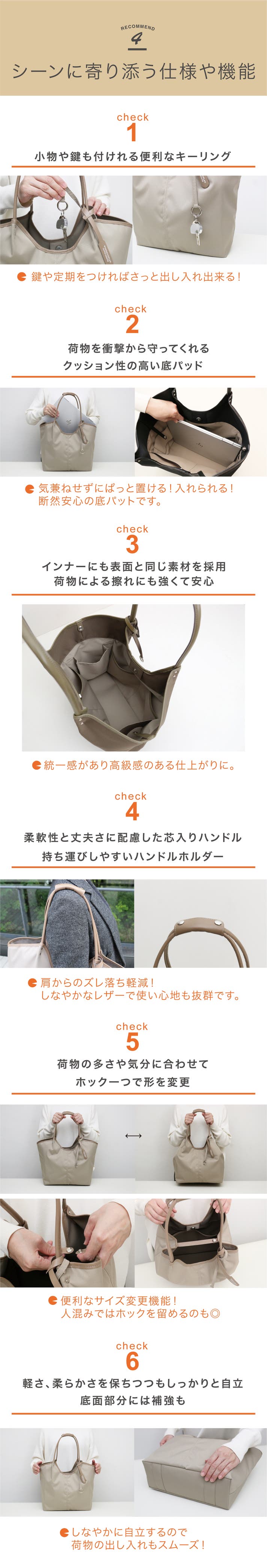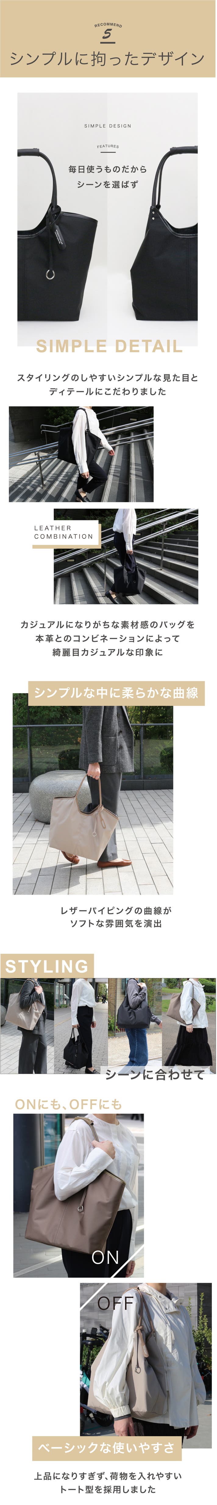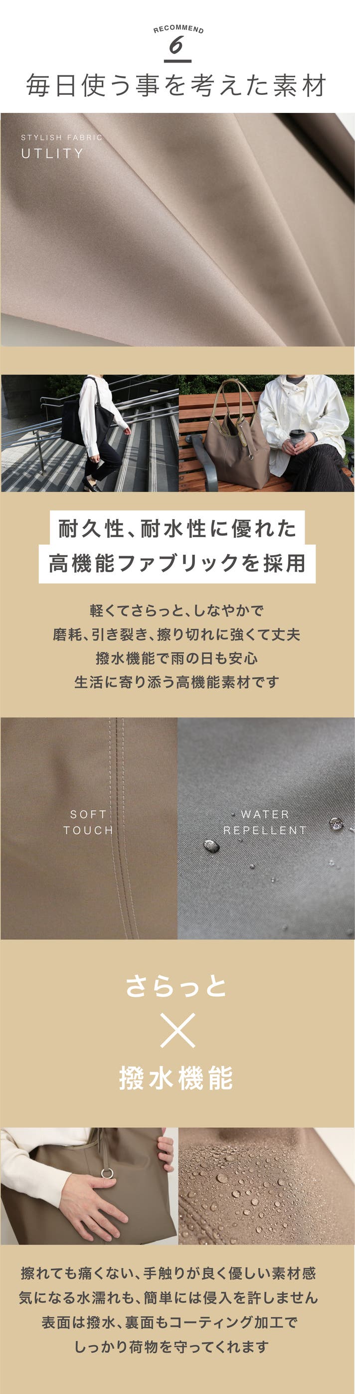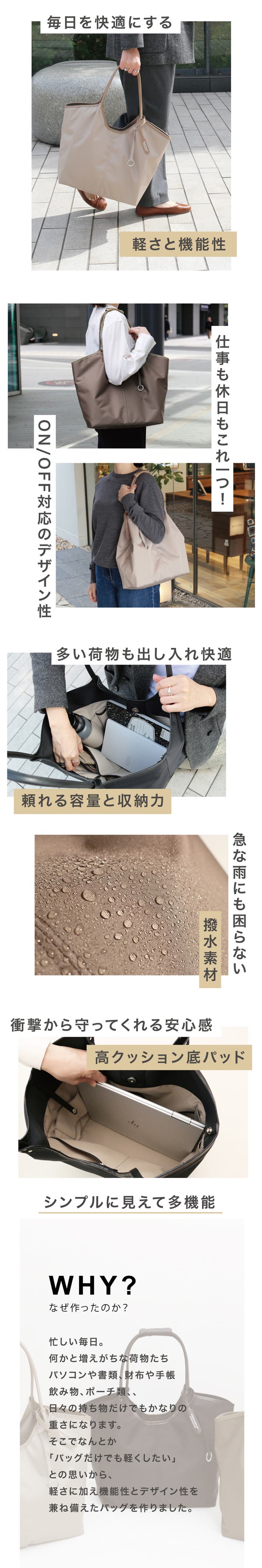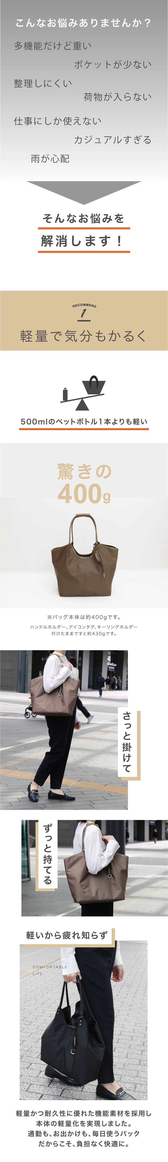 - 【軽量×機能素材】軽量なトートバックで肩への負担軽減。丈夫な機能素材で雨の日にも対応。