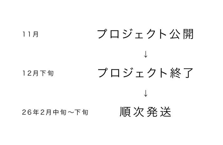 このプロジェクトはAll in型です。目標金額の達成に関わらず、プロジェクト終了日の2025年12月30日までに支払いを完了した時点で購入が成立します。