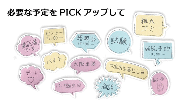 普段のゴミ出し、通院、美容院、食事会、荷物の届く日、シフト管理など、曜日で管理できることなら、アイデア次第で何にでも利用できます。