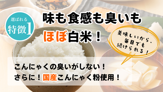 - 『こんにゃく』だとはわからない!臭いや食感、そして美味しさも“ほぼ”白米!